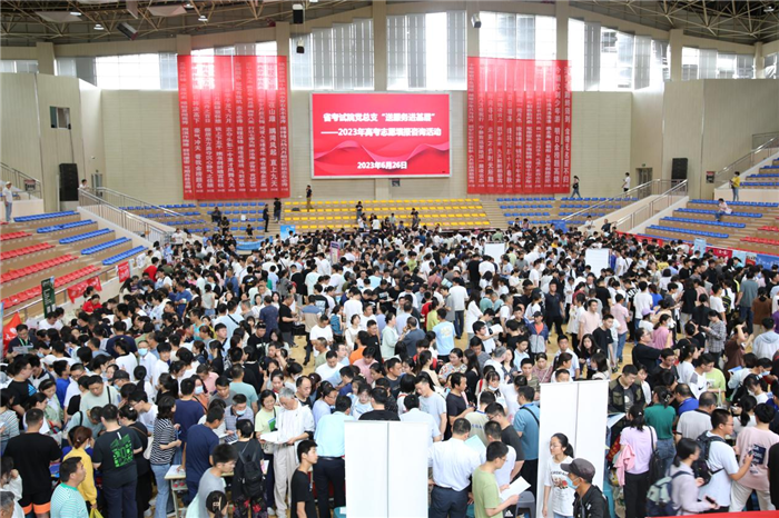 為(wéi)幫助廣(guǎng)大考生(shēng)和家長更好地理解2023年高考政(zhèng)策,合理(lǐ)填報誌願,6月26日,安徽省教育招生考試院黨總支走進馬鞍山二(èr)中開展2023年高(gāo)招係列誌願谘詢服務活動(dòng)。省教育招生考試院院長沈滔、馬鞍山市教育局局長王焰(yàn)、副局長王東山(shān)、招生考試(shì)院院長程言君出席活動。80餘所全國各地高校招生負責同誌(zhì)和近2000名考(kǎo)生及家長代表參加活動。
