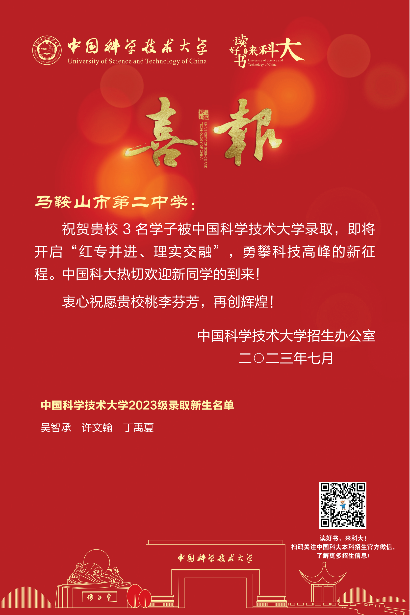 中國(guó)科學技術大(dà)學向我校發來喜報