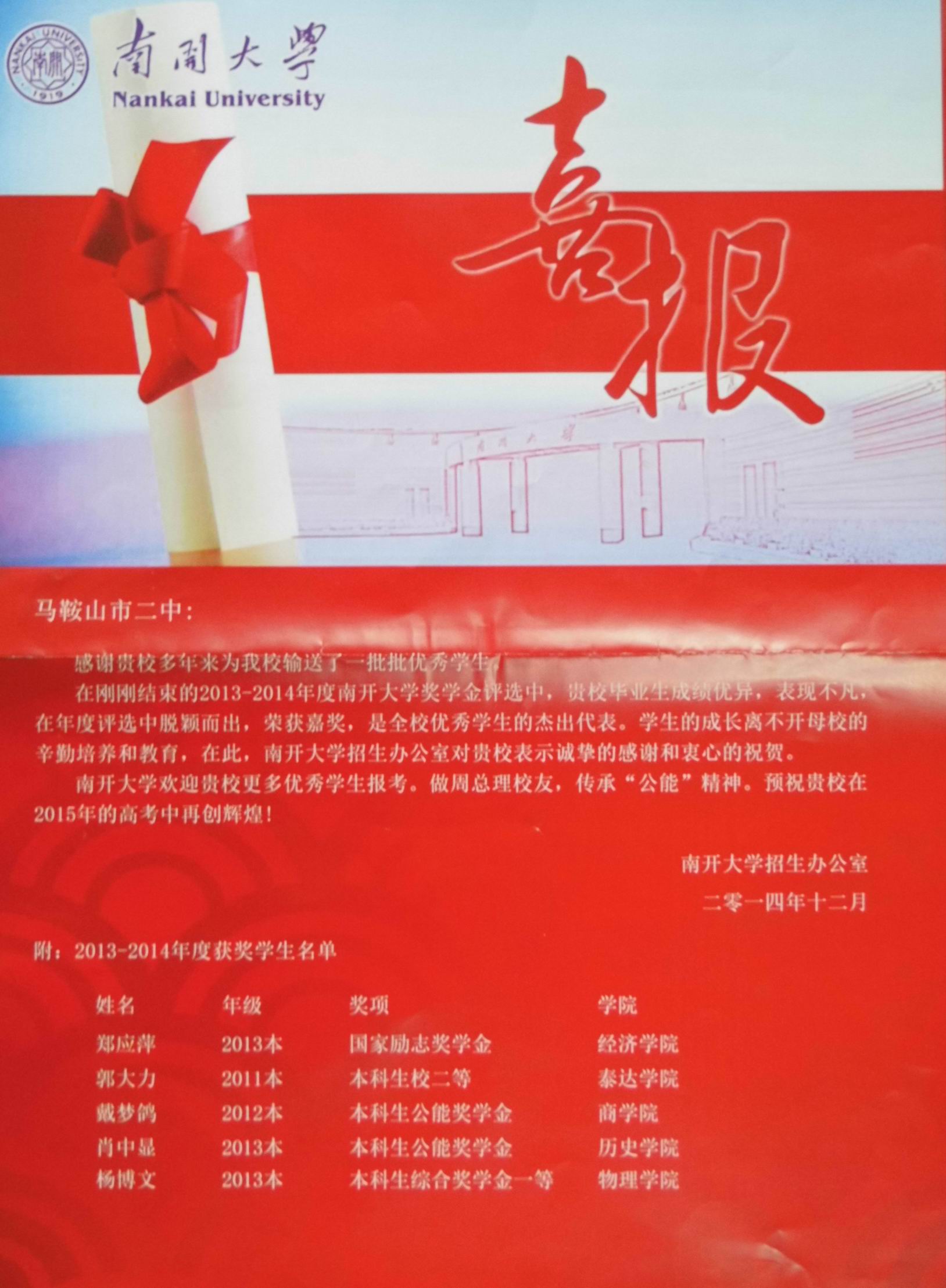 南開大學喜報