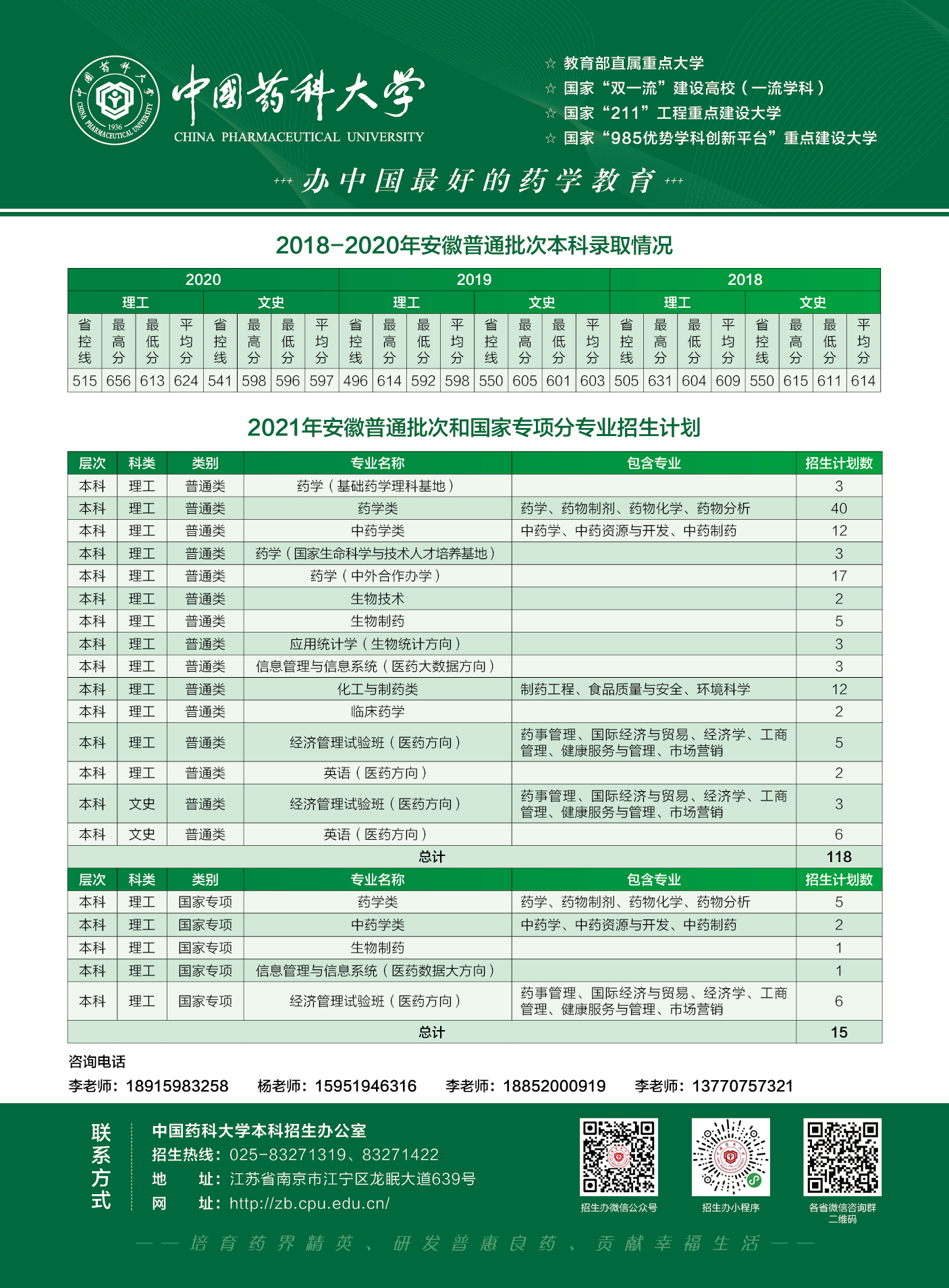 安徽招(zhāo)生組聯係人(rén): 楊老師:15951946316 金老師:13915923175 李老師:18915983258 招生簡章地址:http://zb.cpu.edu.cn/48/ee/c9133a149742/page.htm 點擊下載去(qù)年分(fèn)數線