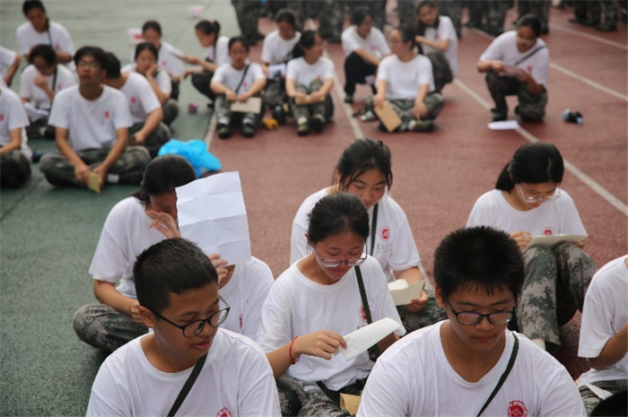下(xià)午,烈陽暫歇、風過樹梢、家(jiā)書已(yǐ)至。參訓學員以班為單位集體閱讀家書,接受父母教(jiāo)誨,堅決完成訓練。