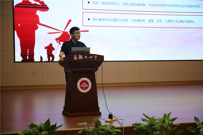 在食堂用餐、綜合樓報告廳午休後,下午十四時,全體參訓學員接受軍事(shì)理論教育,學習軍兵種常識。