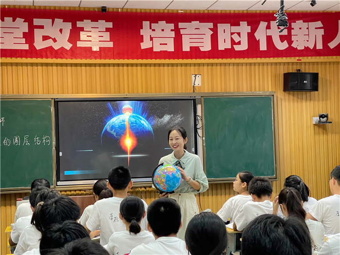 蘇陽老(lǎo)師通過趣味視頻引(yǐn)入授課主題(tí)“地球的(de)圈層結構”,激發學生的學習興趣,帶領(lǐng)他們進(jìn)入奇妙的地(dì)球內部世界。蘇老師理論聯係實際,引導(dǎo)學生(shēng)學會用“地理眼”認識學習(xí)生活中的地理,啟發了學生的思維,調動了學生參(cān)與(yǔ)學習的積極性。蘇老師在教學中注重發揮學(xué)生的(de)主體地位,注重學生的情感體驗和價值引導,學生在(zài)學習知識的同時(shí),情感也能得以升華。