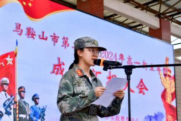 “請(qǐng)黨放心,強國有我”,七個(gè)學生方隊在教官的指揮下依次昂首步入會場。在馬(mǎ)鞍山二中校旗的引領下,高一新生們以挺(tǐng)拔的身姿、堅定的步伐,響亮的喊聲依次經過(guò)主席台接受檢閱。他們隊(duì)列整齊,動作規範,目光堅毅,步伐鏗鏘,口號嘹亮,展現出了軍訓期間所練就的嚴明紀律與頑強意誌。每一步都踏出了(le)青(qīng)春的節拍,每一聲口號都喊出了少年的豪情壯誌,贏得了在場師生的掌聲與喝彩。