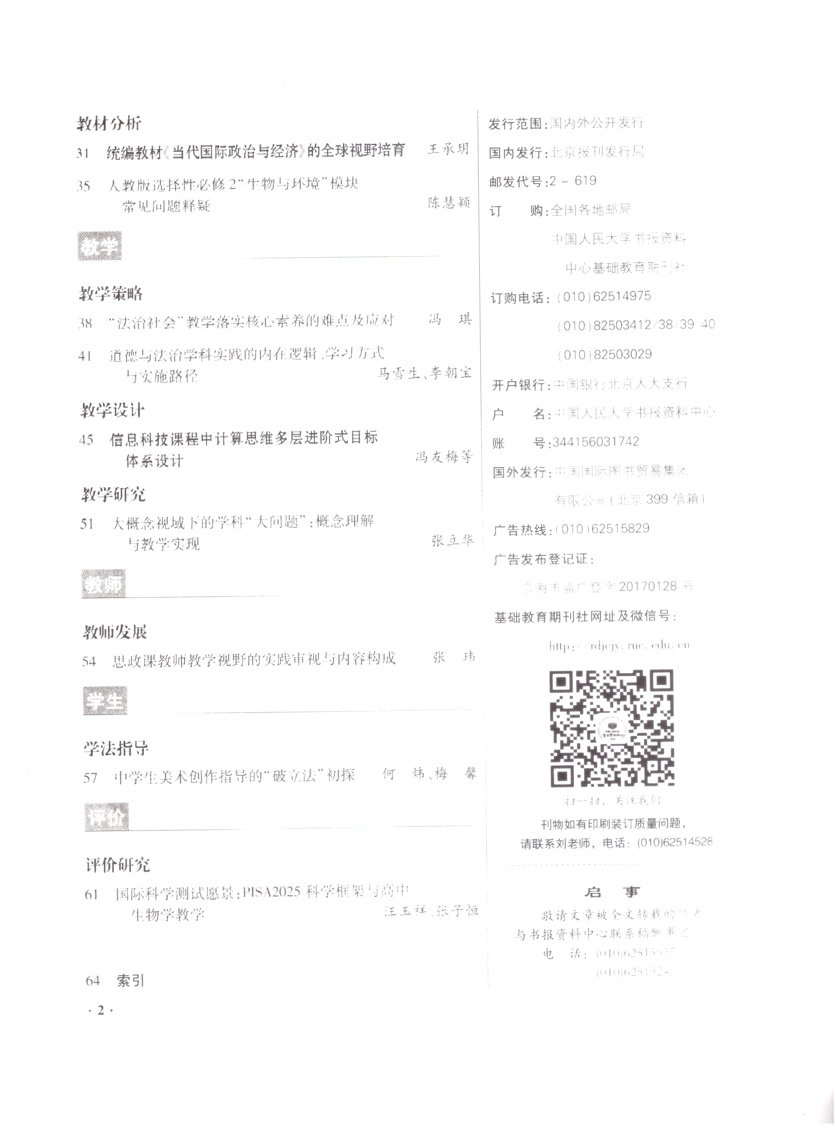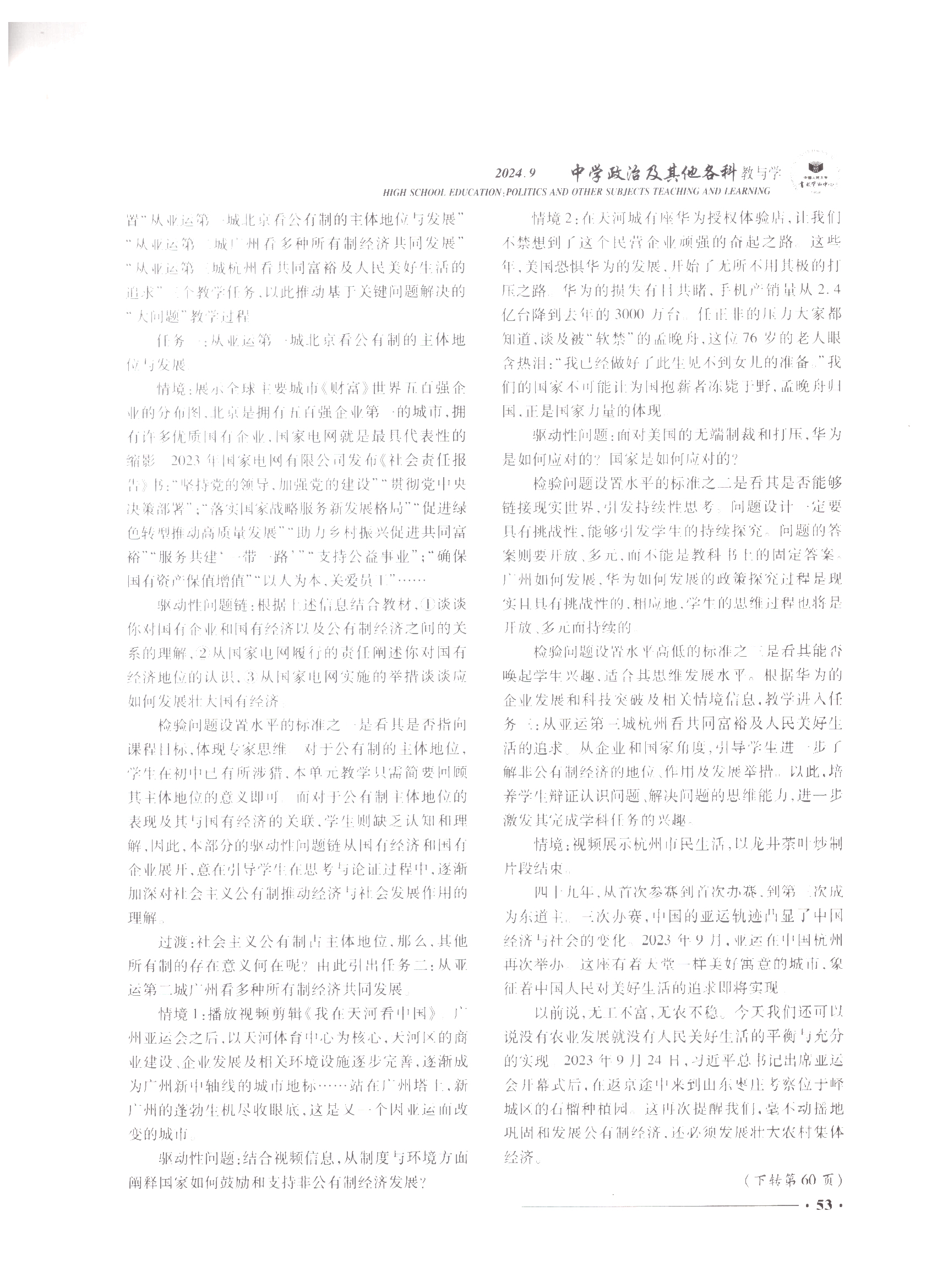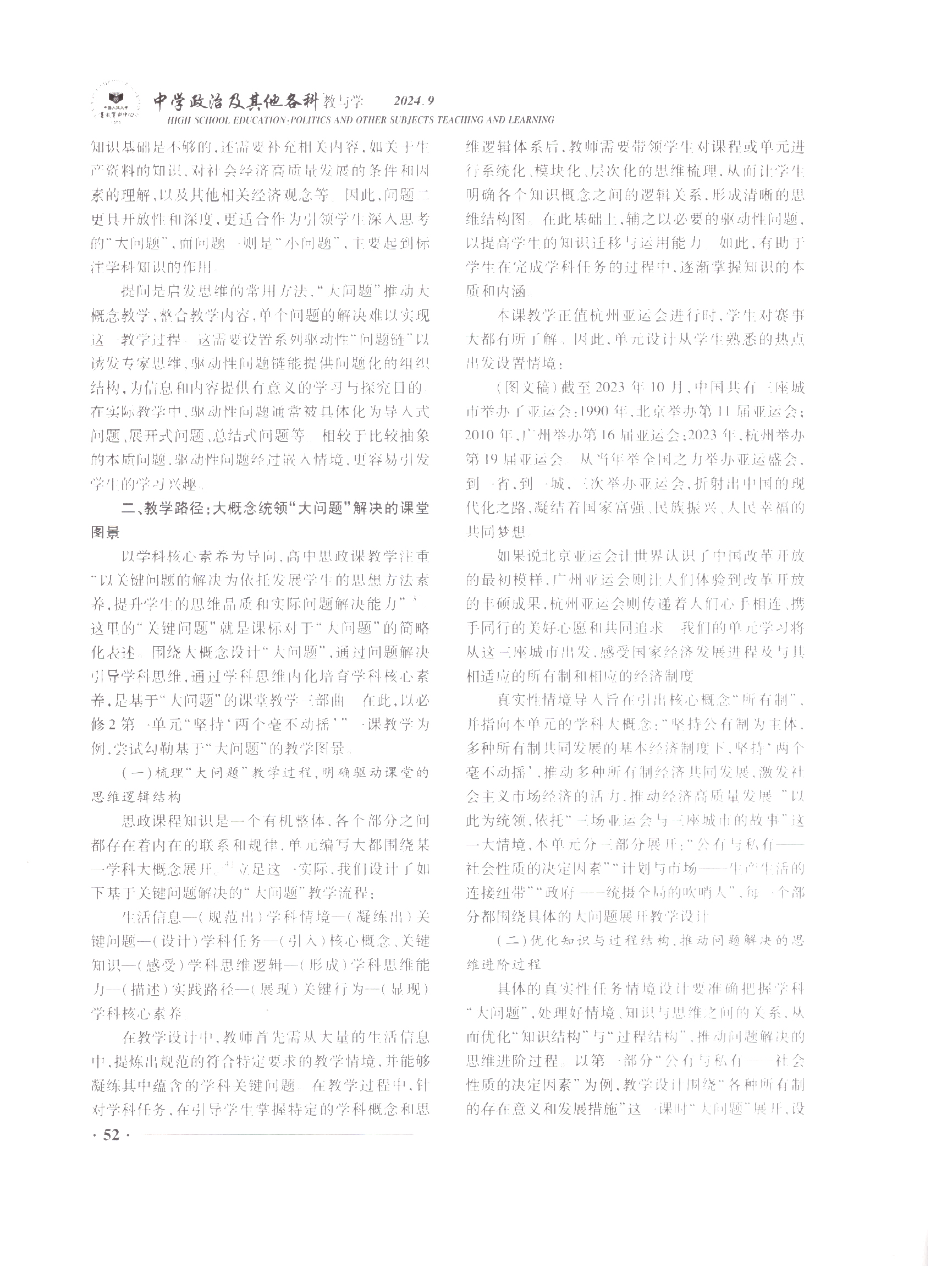 馬鞍山市大中小學思政教育一體化建設聯盟第四組成員單位馬鞍山市第二中學思政課教師張立華老師論文(wén)“大概念視域(yù)下的學科‘大問題’:概念(niàn)理解與教學實現”獲中國人民大學書報資料中心《中學政(zhèng)治及其它各(gè)科教與學》2024年第9期全文轉載。這是半年內張立華思(sī)想政治名師工作室圍繞大中小學思想政(zhèng)治教育一體化建(jiàn)設,精研“大概念”教學,產出的係列研究成果再(zài)次(cì)被人大複印全文轉載。