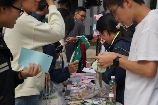 中(zhōng)午12:40,學校還開展了“傳承·創新”手工DIY活動,學生們現場體驗(yàn)了傳統手工藝,如製作香囊、編織祈福繩等,讓同學們感受到傳統文化的魅(mèi)力。此(cǐ)外,現場還展示了部分學生(shēng)原創的周邊產品,受到了大(dà)家的歡迎(yíng)。