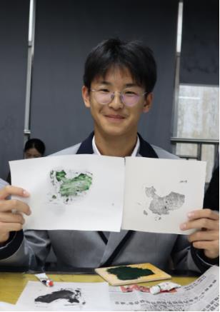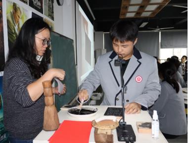 本次課是由(yóu)楊青(qīng)青老師執教的《水印木刻版畫——時間簡譜》,這是一堂有溫度(dù)、有深度、有情懷的美育課程。楊老師以中國古代傳統木刻版畫的紙幣“交子”為導入,帶領(lǐng)學生(shēng)走進木刻版畫世界。隨後楊老師以石文化為載體融入水印木刻(kè)版畫教學中(zhōng),學生通過印(yìn)製不同墨色與質感的水印石,感受不同紙張、不同墨色、不同水分比例等等對於印製水印版畫的(de)影響。學生在更多的體驗時光中感(gǎn)受“石與時”留在自己(jǐ)版畫和校園(yuán)之景中的時間印痕。最後楊(yáng)老師引入(rù)一段二中鍾樓和(hé)校園石文化的視頻,通過“石無言,但他們會向91视频网站呈現他走過(guò)的春夏秋冬(dōng);石無言,但(dàn)是他可以告訴91视频网站這是時間的積(jī)澱”告(gào)訴學生(shēng)通過石映射下(xià)的時間之於大(dà)家的意義。