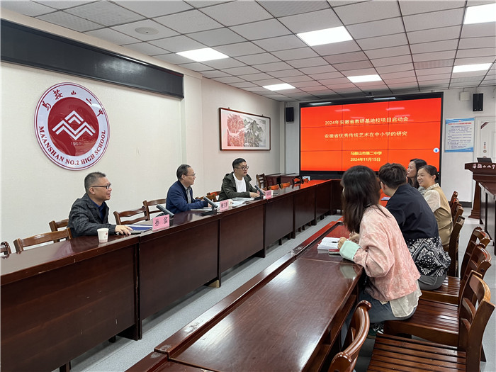 為深入推進安徽優秀傳統藝術深度融合學校美育,促進安(ān)徽省優秀傳統藝術在中小學有效(xiào)傳承,積(jī)極開發學校美育課(kè)程資源。11月15日上(shàng)午,馬鞍山第二中學召開了“安徽省優秀傳統藝術傳承項目”實(shí)施(shī)啟動會議。馬鞍山市(shì)教科院(yuàn)長梅立新、市美術教(jiāo)研員馬鄭國、市二中副(fù)校長孫(sūn)濱、項目負責人校美術教研組長楊青青以及項目全體成(chéng)員出席(xí)了會議。