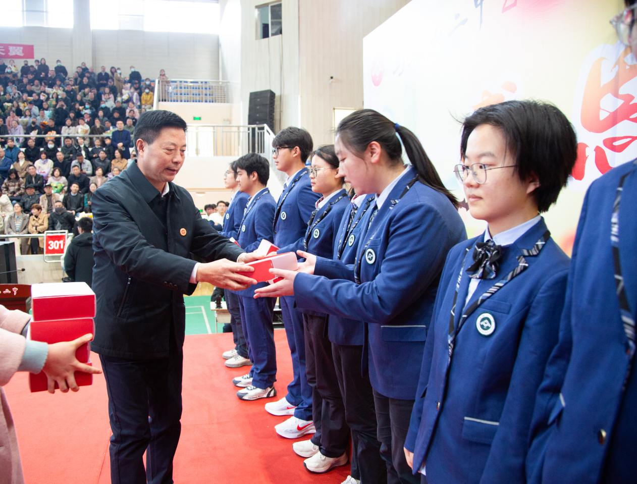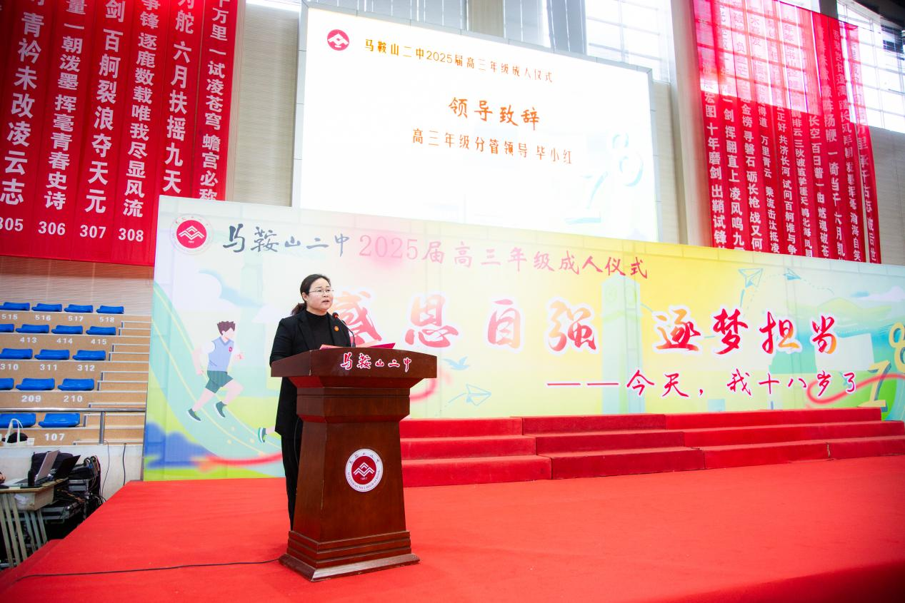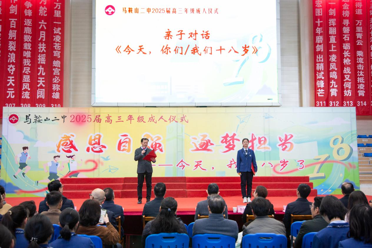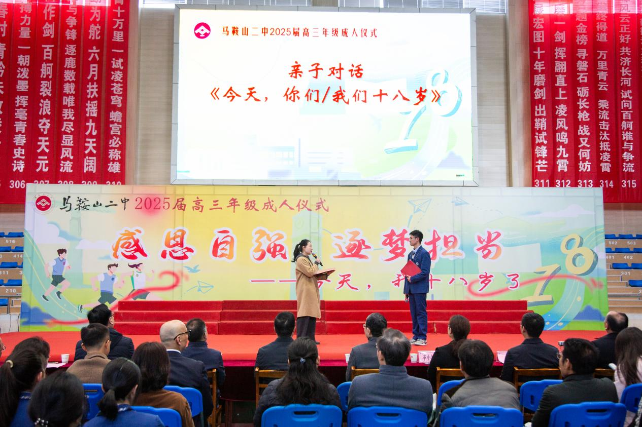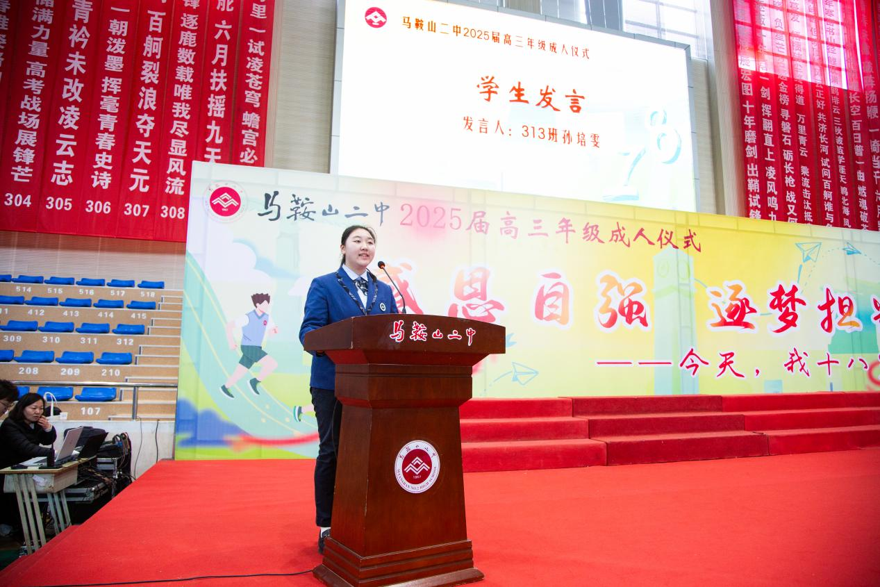 三月的春風輕輕拂過雛鷹雕像,十八(bā)歲的鍾聲在(zài)校園上空(kōng)悠揚回蕩。3月18日上午,我校2025屆全體高三學子身著(zhe)整齊的正裝,在學校領導(dǎo)、全體高三年級(jí)教師和家長的見證下,舉行了一場隆重的成人儀式,祝福2025屆高三學子(zǐ)正(zhèng)式邁向青春新階段。儀式(shì)以“感恩自強(qiáng) 逐夢擔當”為主題,以四大篇章奏(zòu)響(xiǎng)了新時代二中(zhōng)學子的成長交響,高三年級何壽雲老師、308班於凡迪同學擔任(rèn)主持。