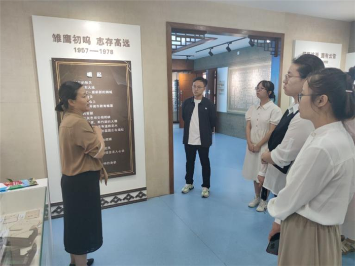 聶曉霞副書記帶領著(zhe)新進教師參觀校史館,她詳細(xì)地介紹了二中的校(xiào)園文化(huà)、發展曆程、名(míng)師隊伍、學生風(fēng)采以(yǐ)及優(yōu)秀校友。