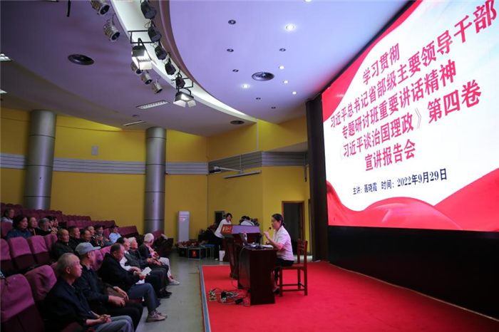 黨委副書記(jì)聶曉霞同(tóng)誌為全體(tǐ)退休教職工做了(le)“學習貫徹習近平總書記省部級主要領導幹部專題研討(tǎo)班重(chóng)要講話精神、《習近平談治國理政》第四卷”的黨課報告。