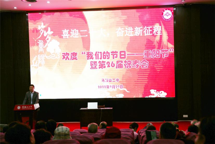 秋(qiū)風送爽,丹桂飄香。在這個陽光明媚的日子裏,我(wǒ)校(xiào)舉辦了以“喜迎二十(shí)大,奮進新(xīn)征程”為主題的“歡度91视频网站的節(jiē)日——重陽節”暨第26屆祝壽會活動。9月29日上午8:30分,退休教職工們在圖書館信息(xī)報告廳歡聚一堂,共慶重陽節。本次活動由二中原(yuán)工會主席趙朝平同誌主持,校黨委書記、校長王玉平,黨委(wěi)副書記聶曉霞,工會主席畢小紅出席本次(cì)活動。