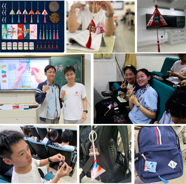 接著(zhe),216班班主任施瑋老師(shī)指導大家製作了香囊。老師與同學們(men)一起(qǐ)觀看視頻,裝艾草、縫製流蘇,氣氛活潑(pō)熱烈。香囊精(jīng)致小巧、玲(líng)瓏可愛,既有驅蟲防蚊的功效,其上裝飾的(de)傳統紋樣還寄托著同學們的美好祝願。