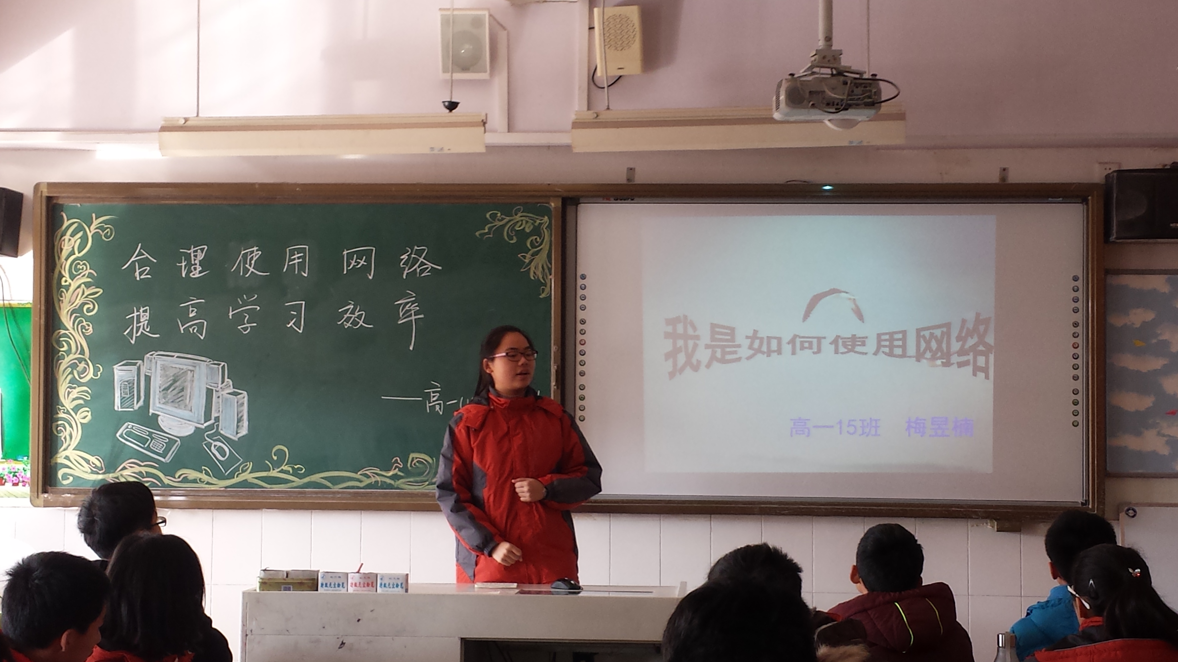 12月23日上午,以“合理使用網絡,提高學習效率”為主題的班會課在高一15班教室如期召開。學校分管德育工(gōng)作的(de)儲校長、沈主任,以及多(duō)位老師觀摩(mó)了此次(cì)班會。