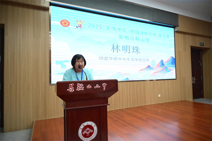 隨後,領隊代表印尼華裔中華樂趣學苑主席林明珠表示,他們懷著(zhe)無比激動的心情,在安徽省僑聯的盛情邀請下(xià),帶領營員們跨越山海來到安徽馬鞍山。此(cǐ)次夏令營課程安排精心,既有係統學習中華文化知識的文化課堂,又(yòu)有豐富多彩的課外研學實踐活動,能讓營員們全方位、沉浸(jìn)式地體驗中華(huá)文化的獨特(tè)魅力。她殷切希(xī)望營員們珍惜這次(cì)難得的機會,在尋根問祖的過程中,增強對中華(huá)文化的認同感與(yǔ)歸屬感,並堅信這必將成為一場收獲滿滿、令人終生難忘的文化與友誼之旅。