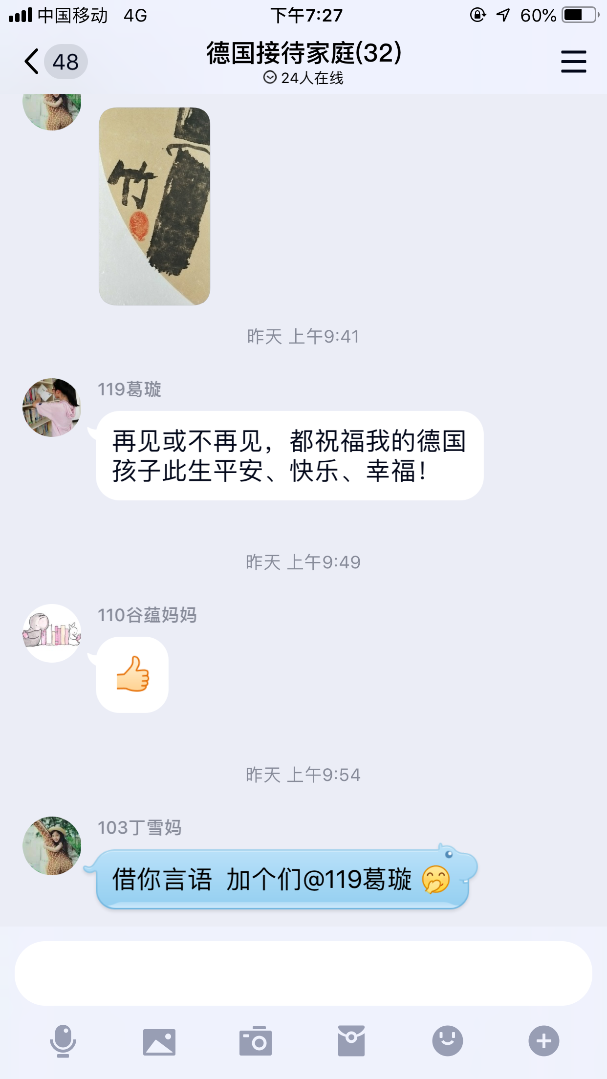 每一個接待(dài)家庭,以己之力,向世界宣傳中國,宣傳馬鞍山,打開了國際交流的窗口,結下了跨國友誼,同時也展現中國人精神氣節、中國文化的博大精深。每一位家庭都是民族的文化使者,感謝各位接待家庭的無私付出!僅以家長的(de)真誠祝福結束(shù)此文(wén):