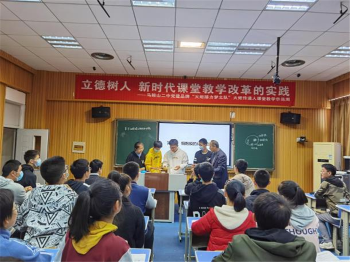 馬鞍山二中黨建品牌“火(huǒ)炬接力夢之隊”之火炬傳遞人課堂教(jiāo)學匯報周於本周(zhōu)正式開課。圍繞“立德樹人,新(xīn)時代課堂教學改(gǎi)革的實踐”的主題,10月26日上午,我校生物教(jiāo)研組朱文明、倪文兩(liǎng)位高級教師分別開展了新(xīn)教(jiāo)材必修一《細胞膜的結構和功能》和必修二(èr)《生物有共同祖先的證(zhèng)據》的教學示範(fàn)課,市教研員禹萍老師(shī)、校黨委委員喻全(quán)貴、教科處主任沈榮(róng)、教導(dǎo)處副主任盧大亮和全市(shì)生物(wù)教師參加聽課、評課。