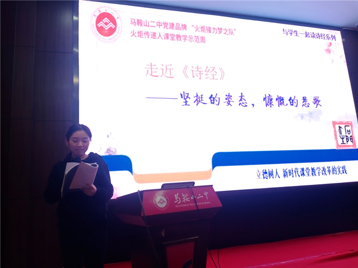 本(běn)周是馬鞍山二中黨建品牌(pái)“火炬接力夢之隊”第二輪火炬傳遞人課堂(táng)教(jiāo)學示範周,10月28日,我校市學(xué)科帶頭(tóu)人潘文傑老師與張陳老師分別開出兩堂精彩絕倫的(de)語文示範(fàn)課。市語文教研員俞仁鳳、我校黨委副書記聶曉霞蒞臨指導,全(quán)市高中語文老師積極參與聽課。