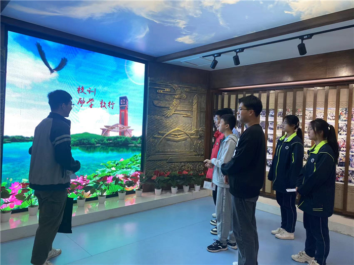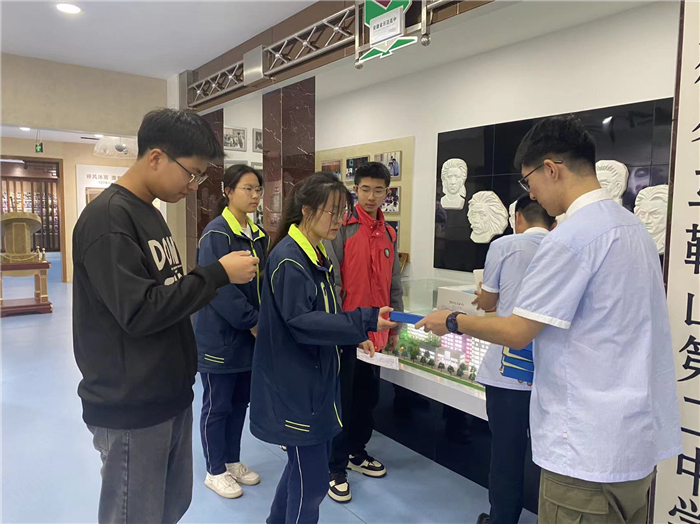 馬鞍(ān)山二中(zhōng)校史館是我校建校以來辦學曆程和發展曆史的(de)縮影,是學校曆史與(yǔ)文(wén)化的重要載體。中午1點,同學們首(shǒu)先(xiān)來到校史館,在第十一屆學(xué)生(shēng)校長助理(lǐ)章峻寧、陳中(zhōng)琦同學的帶領下進行參觀。