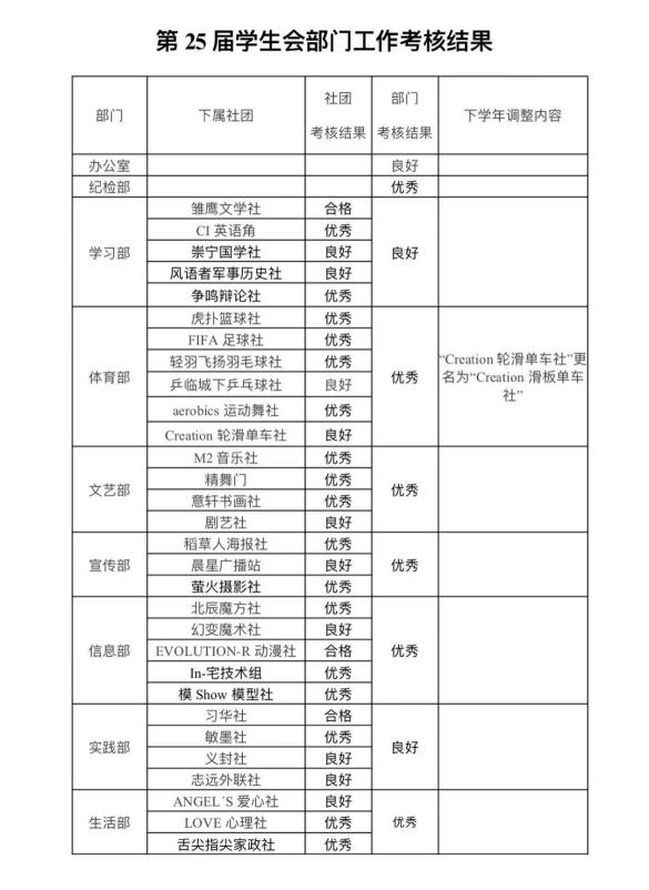 近期,在(zài)學校團委的指導下,我校學生會開(kāi)展了第25屆學(xué)生會考核(hé)工作。依據考核細則及相關要求,團委老師與學生會主席團(tuán)成員一起(qǐ),根據各部門的考核材料及實際工作(zuò)情況,對各部門進行綜合評分。最後,根據考(kǎo)核結果評選出2020-2021學年度馬鞍山二中“優秀學生會幹部(bù)”並頒發獎狀(zhuàng)。現將考核結果麵(miàn)向全校師生進行(háng)公開(kāi)。