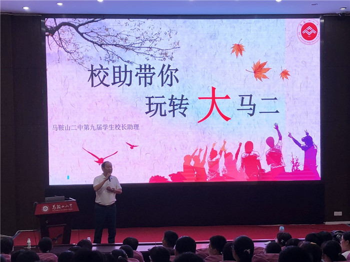 午飯過後,按耐不住(zhù)興奮之情的高一同學們紛紛而來,活動在學術報告廳正(zhèng)式拉開了帷幕。首先,學生校長助理(lǐ)林樂章、方語馨依次上台,他們生動、細致地向大家介紹了馬(mǎ)鞍山(shān)二中學生校長助理的工作職責和本次活動的主要內容。隨後,副校長王躍兵向同學們介紹了二中的建校曆史,帶領同學們領略了二中精神的內(nèi)涵,並鄭重宣布活動開始。
