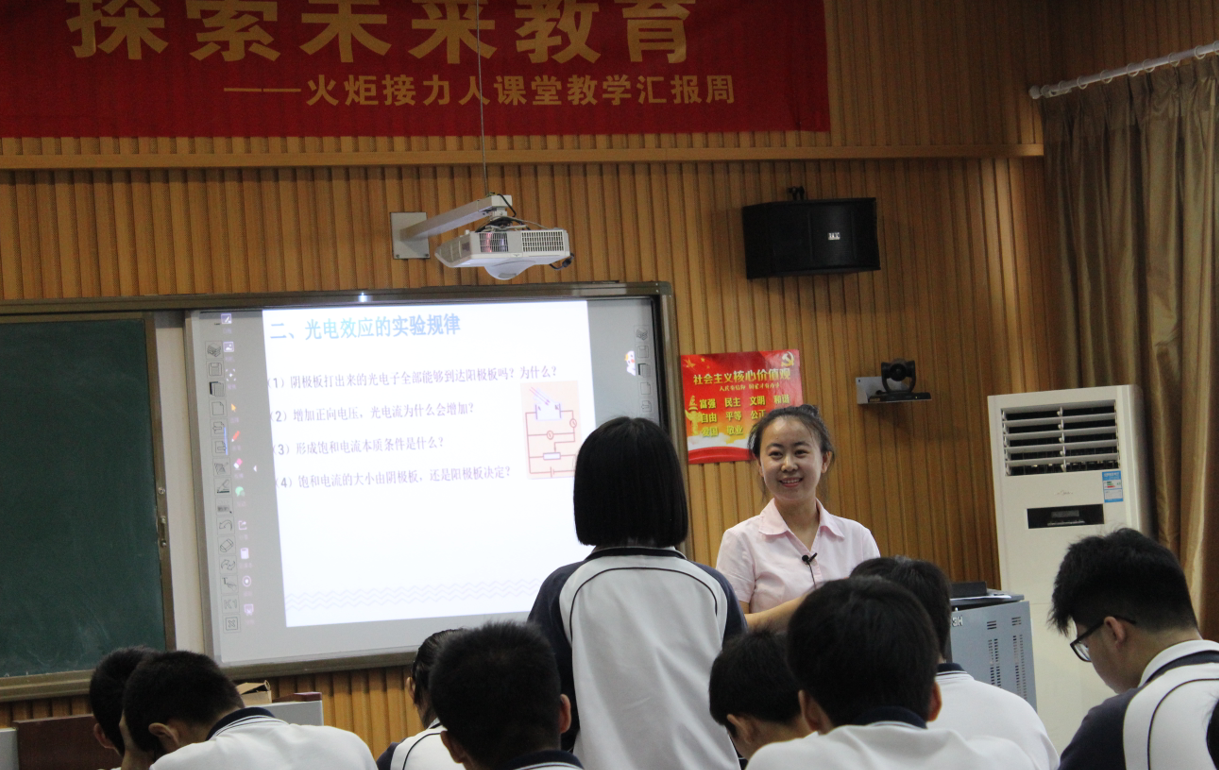 王旭老師展示的是《光電效(xiào)應》這(zhè)節(jiē)課,王老師的教學基本功紮實,邏輯嚴密,課堂設計構思巧妙,層次鮮(xiān)明,彰顯了先進的教學理念。在教學過程中王老師用學生已有的認(rèn)知經驗引出結論,與實(shí)驗結果產生矛盾,讓學生產生認(rèn)知衝(chōng)突進(jìn)而(ér)產生探究和解決問題的強烈欲望,這種(zhǒng)方法比較符合學生的認知心理特點,易於接受。