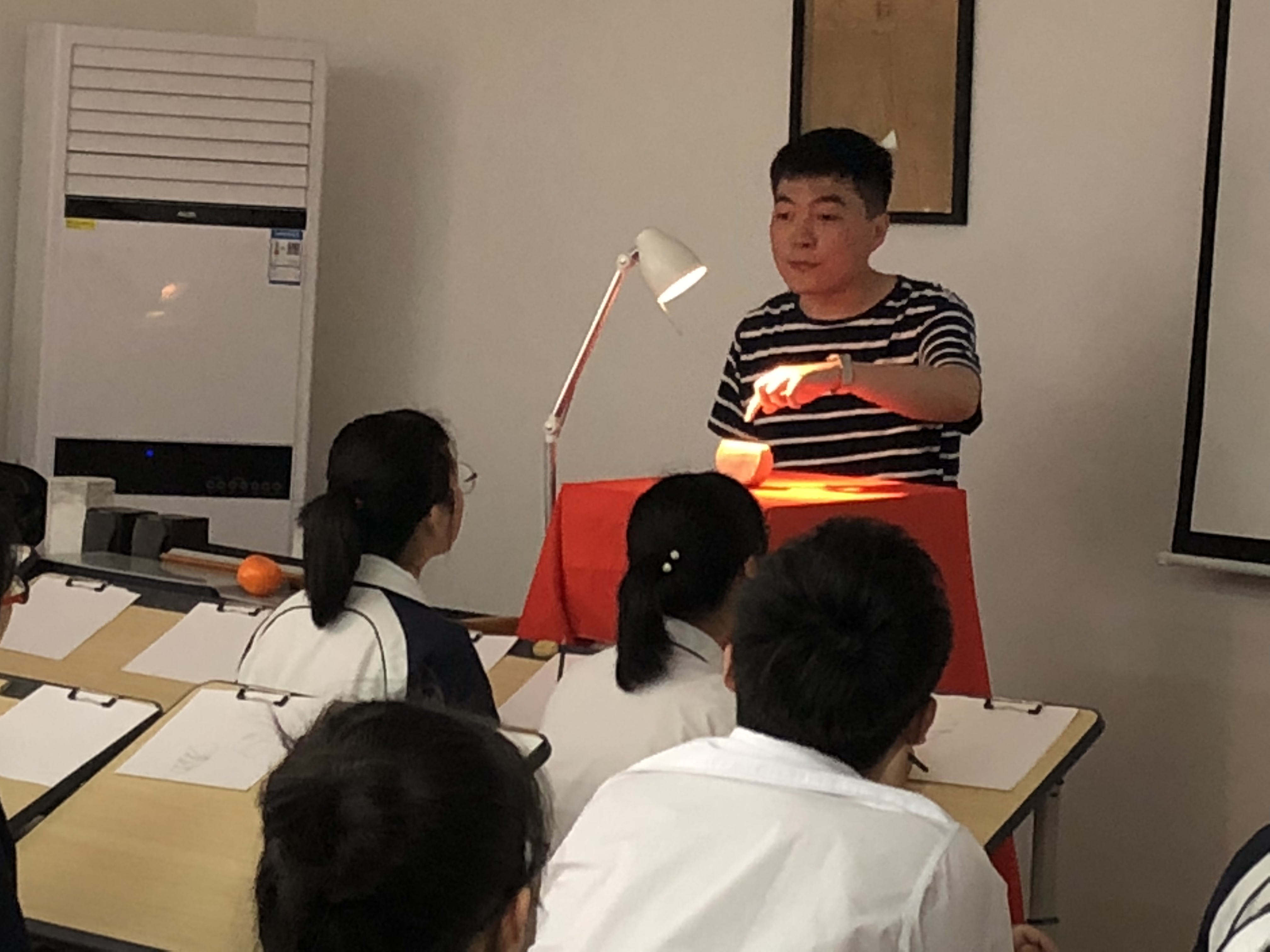 2018年5月18日上午第三(sān)節課,來自馬鞍山二中鄭蒲港(gǎng)分校的(de)楊帆老師在校藝術樓(lóu)美術教室,為全市美術教師帶來了一節(jiē)精彩的示(shì)範課。