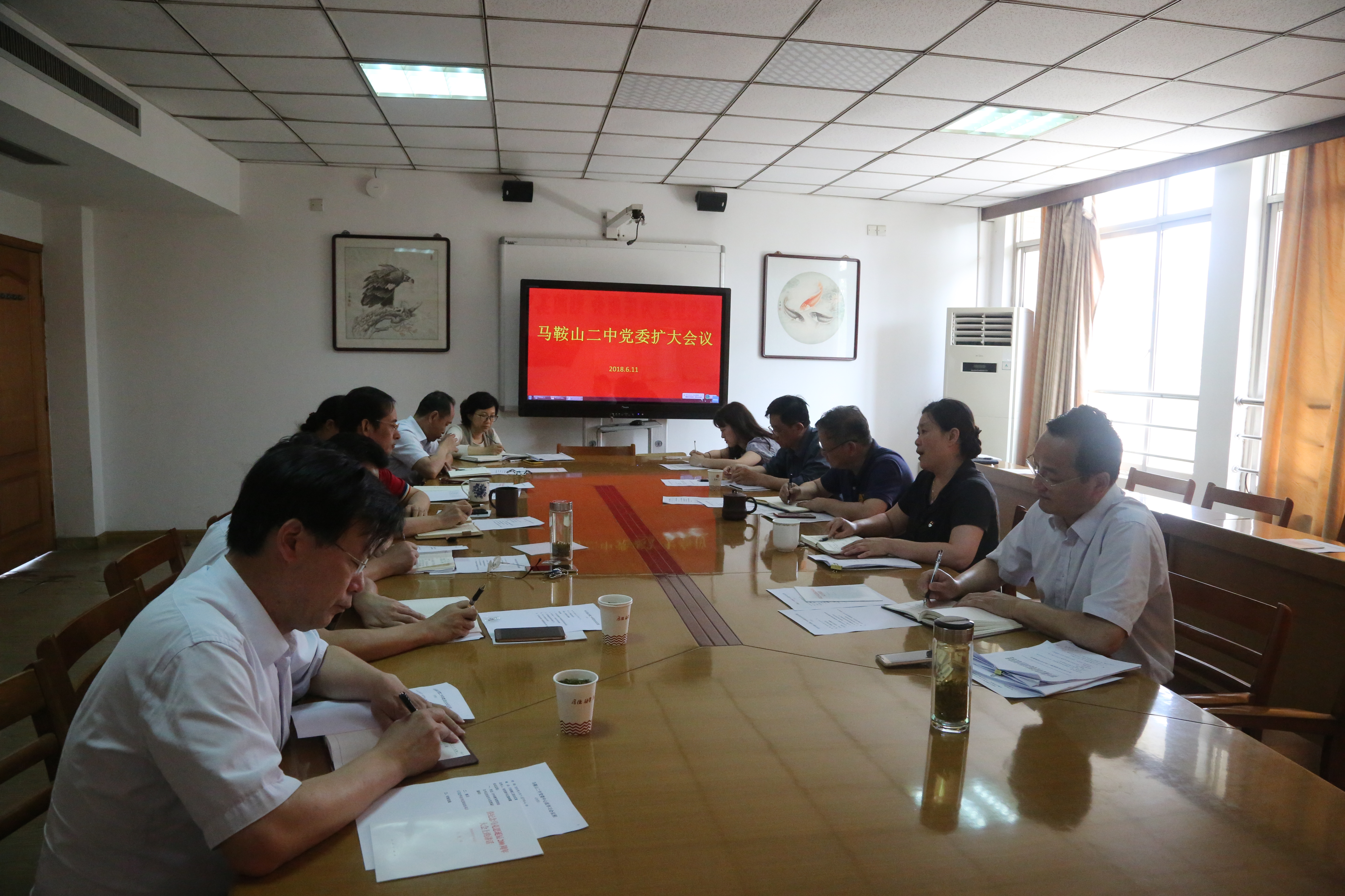 6月11日,馬鞍山二中黨(dǎng)委在行政樓三樓會議室召開黨委擴大會議,黨委書記聶曉霞主持會(huì)議,校黨委委員、各支(zhī)部書記及辦公室負責(zé)同誌參加了會議(yì)。