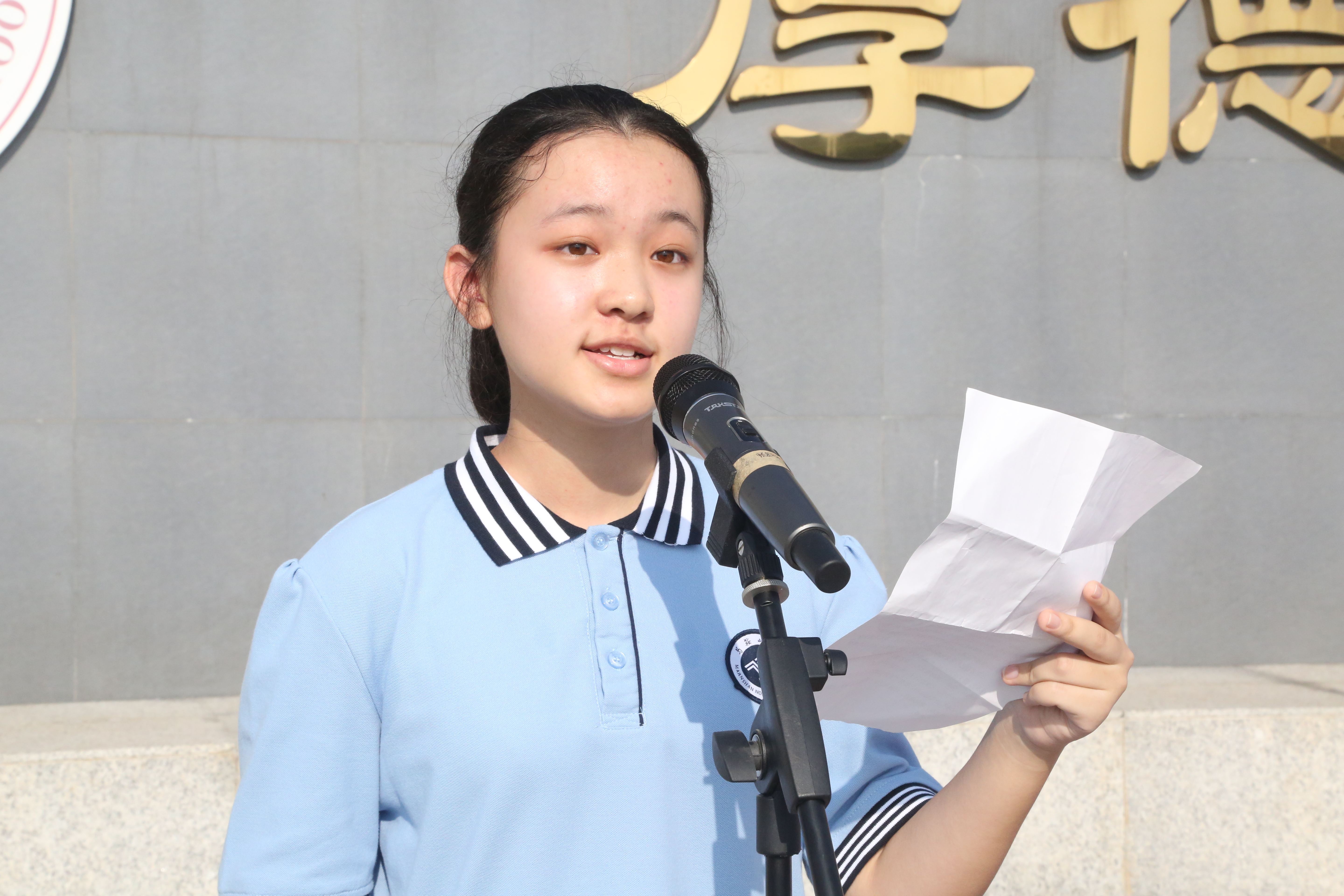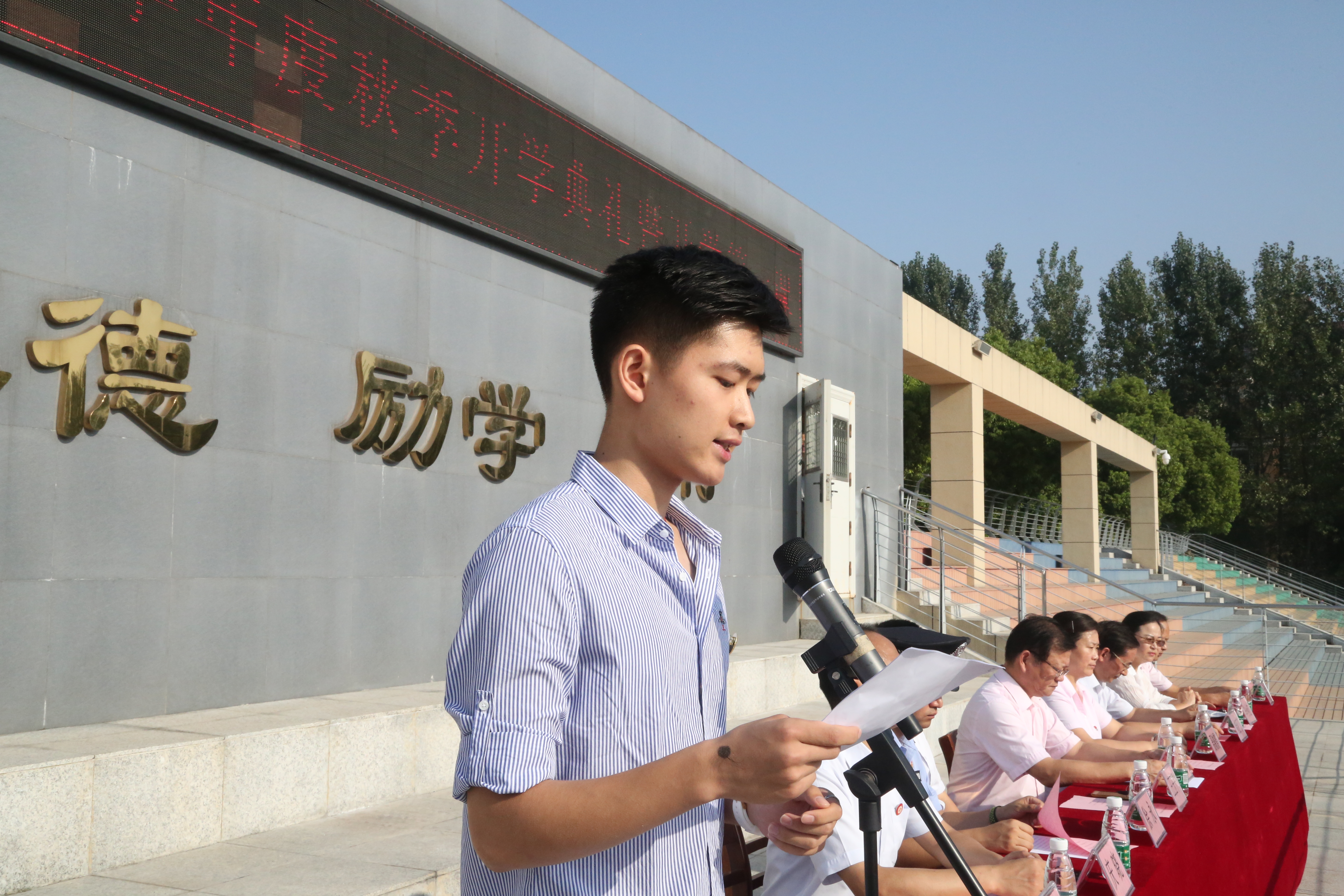 2018屆高三優秀畢業生(shēng)代表,現(xiàn)已錄取中(zhōng)國傳媒大(dà)學的邱震宇同學代表2018屆全體畢業(yè)同學發言(yán)。他帶著對二中母校的深情與懷念,給自己的學弟學妹們提出了忠告和希望。他相信,在“厚德,勵學、敦行”校訓的浸(jìn)潤下,大馬二將成為更多學子夢想起飛的(de)地方。
