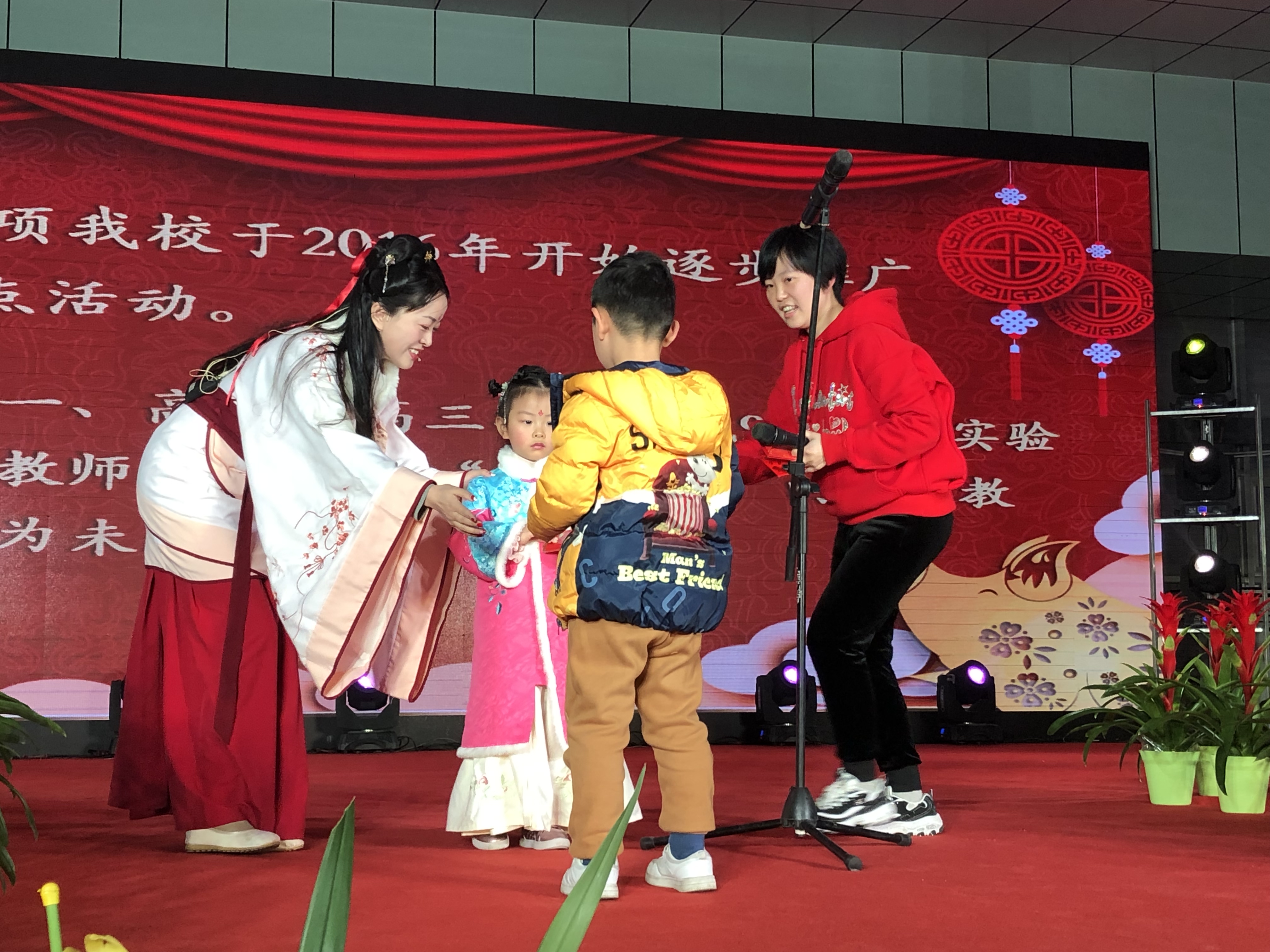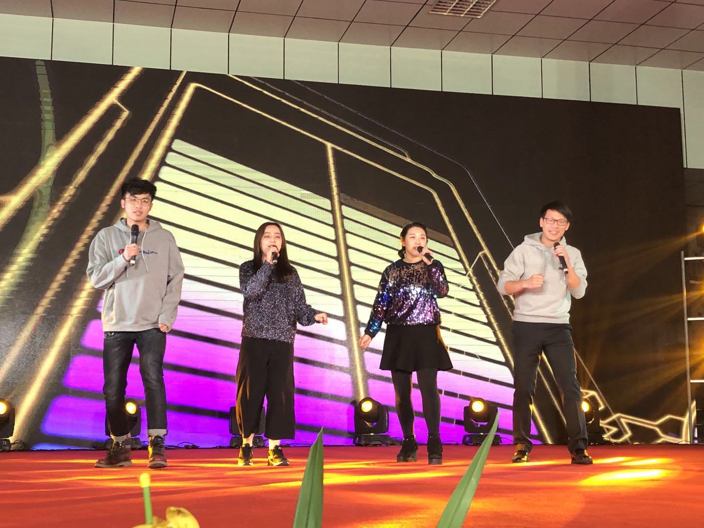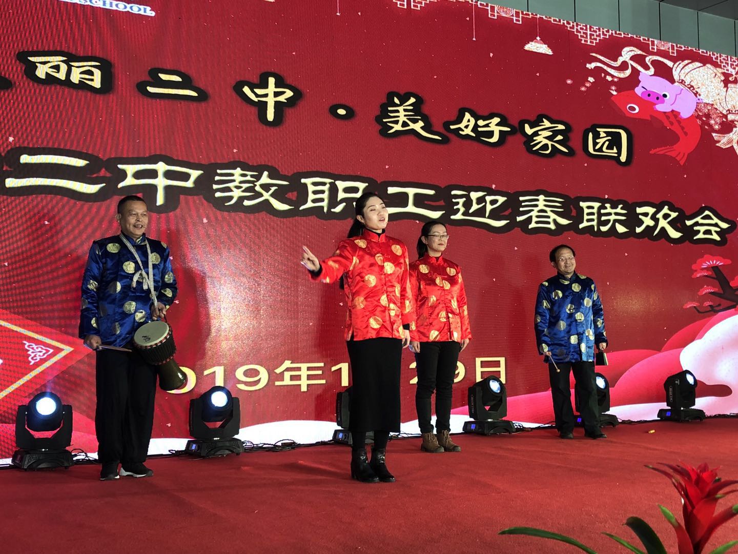晚會在一張一張二中教(jiāo)師的個人照片中徐徐拉開帷(wéi)幕,老師們沉浸在美好的回憶之中。二中(zhōng)青年教師共同體成員18位(wèi)教師,首先為大家(jiā)帶來開場舞表演《新年好》,盡顯青春氣息。學校領導(dǎo)歌曲聯唱《滿(mǎn)滿的愛,深深的情》,道出了(le)對二中的款款深情。鋼琴獨奏《獻給(gěi)愛麗絲》宛轉悠揚(yáng),娓娓動聽;英文歌曲《FiveHundredMiles》聲情並茂,唱出了對二中的(de)深深思戀;吉他彈唱《荷塘月色》,和弦豐滿動聽,節(jiē)奏明快和諧;節目“三句半”明朗(lǎng)活潑,生動有趣;瑜伽、太極、木蘭劍組合《春(chūn)江花月(yuè)夜》翩翩而起(qǐ),舞(wǔ)姿曼妙;歌曲重唱《青年陣線聯盟》歌舞燃爆全場,彰顯青春活力;詩朗誦《將進酒》鏗(kēng)鏘有力,極為傳神;高三年級大合唱《一想到你呀》更加表達了對二中的熱愛(ài)。除文藝表演外,老師們還進行了抽獎、贈送春聯等活動(dòng)。為(wéi)在2018年裏做(zuò)出教學、教研、競賽、高考特別貢獻的(de)獲獎(jiǎng)者(zhě)頒發(fā)獎狀。