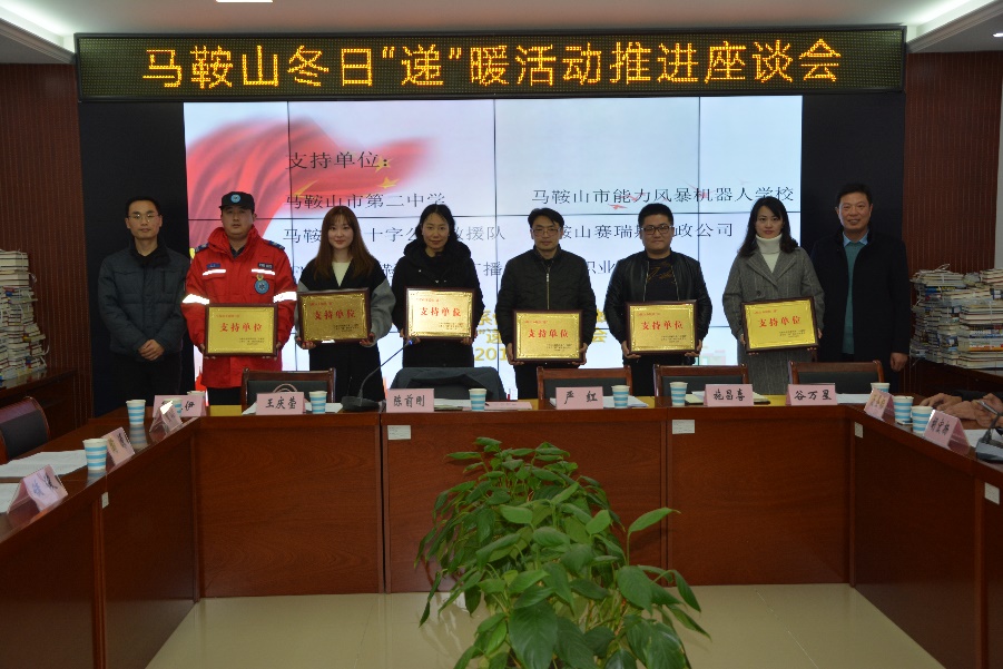 冬(dōng)日“遞”暖(nuǎn)活動組(zǔ)委會對在活(huó)動中給予大(dà)力支持的單位和企業授牌,授予我(wǒ)校及市人民醫院、婦幼保健院、十七冶(yě)醫院、汽運駕校、花仙(xiān)子花店、能力風暴機器人學校、紅十字公(gōng)益救援隊、思藝職業培訓學校、賽(sài)瑞(ruì)斯(sī)家政服務公司、馬鞍山綜合廣播等(děng)11家單(dān)位為馬鞍山冬暖快“遞”支持單位。