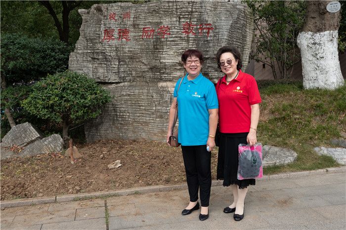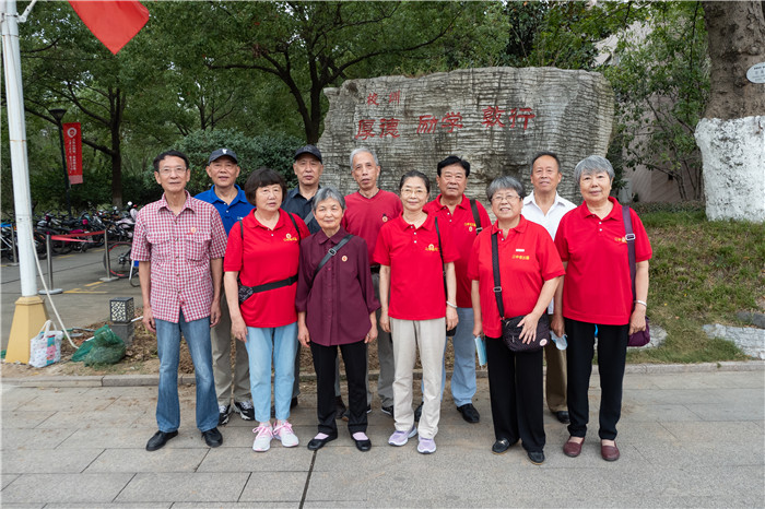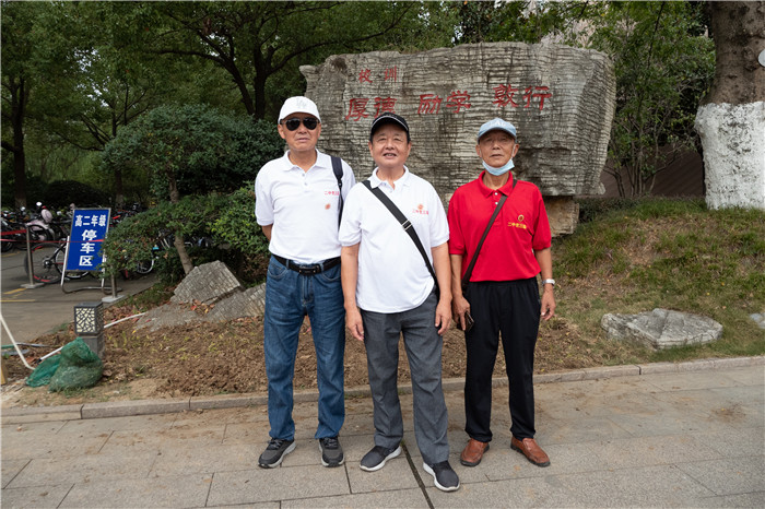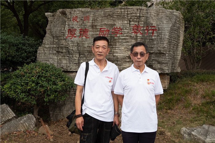 校友們早早來到校園內,在校訓石(shí)、“攀(pān)登”雕塑、“七星浮雕”、“雛(chú)鷹展翅”前駐足合影,共話同窗情。