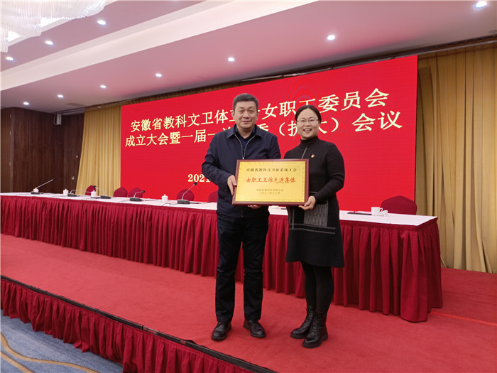 12月16日,安徽(huī)省教科文衛體工會女職(zhí)工委員會成立大會暨一(yī)屆一次全委會議在合肥召開。我(wǒ)校工會女(nǚ)職工委員會獲得“安徽省教科文衛體係統工會女職工工作先(xiān)進集體”稱號,工會主席畢小紅接受了表彰並作為獲獎先進集體在大會上作了交流發言。