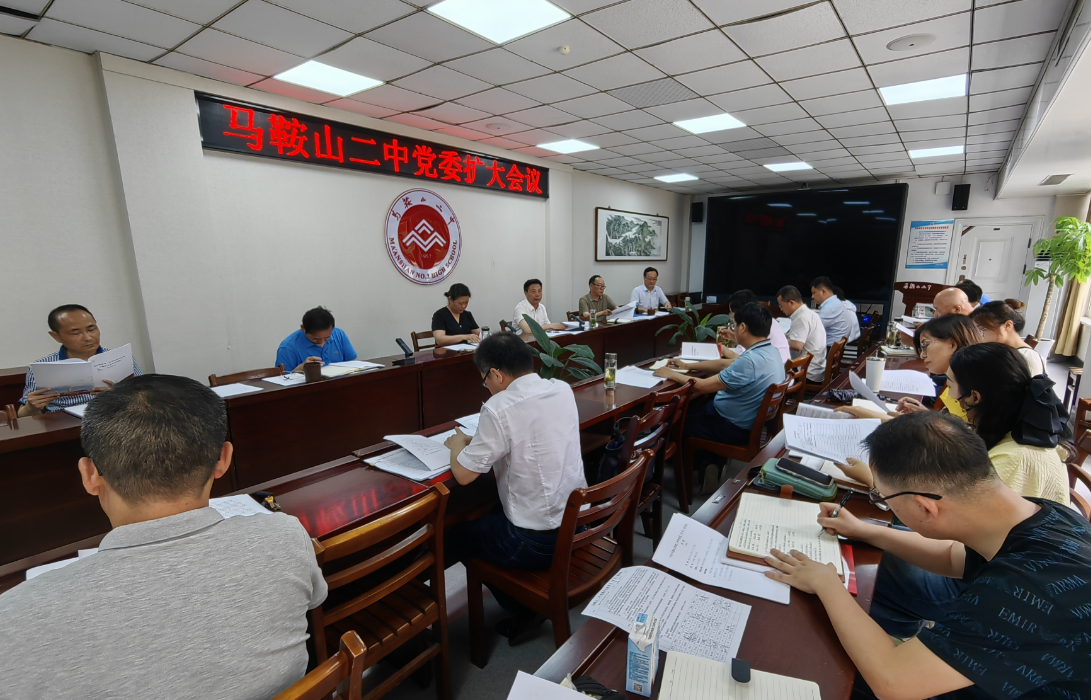 5月29日,馬(mǎ)鞍山二中(zhōng)黨委在行政樓(lóu)一樓會(huì)議室召開黨委擴大會。校黨委書記、校長王(wáng)玉平主持會議,學校(xiào)黨委(wěi)委員、各(gè)支部書記、學校中層(céng)以上黨員幹部、年級部主任參(cān)加了會議。