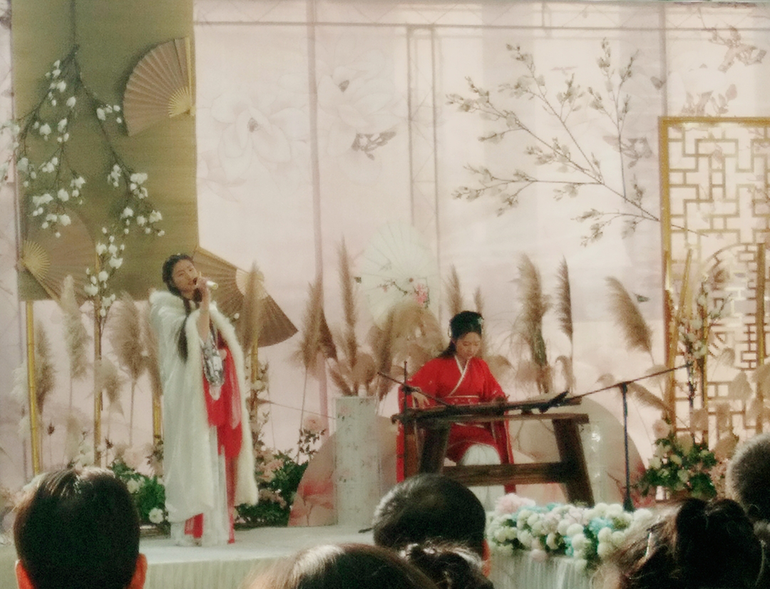 下午一點,在市博物館,金陵琴派(pài)傳承人葛勇、張麗(lì)娟、高興及我市(shì)20多位古琴愛好者,在古典、高(gāo)雅(yǎ)的(de)舞台場景中,現場彈奏了《流(liú)水》、《碧澗流(liú)泉》、《廣陵散》、《雙鶴聽泉》、《遊園驚夢(mèng)》、《良宵引》等十多首經典古琴曲,其間還穿插了茶道、漢服(fú)、古風、昆曲、太極等表演(yǎn)。精美的舞台(tái)設計(jì)、精彩的演奏演示,激起台下聽眾(zhòng)陣陣掌聲(shēng)。