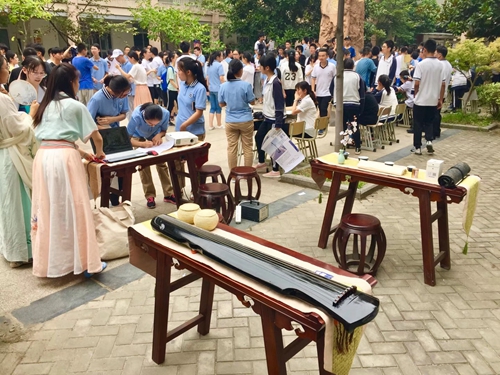 為(wéi)能多招攬新社員,社團的學長學姐們想盡了各式各樣(yàng)奇妙的法子(zǐ):CI英語角邀請丹麥的留學生(shēng)小哥哥坐鎮,金發碧眼的(de)俊朗(lǎng)西(xī)方麵孔很快吸引了一(yī)大波小迷妹的加盟;崇寧國學社(shè)的成員們紛紛做古裝打(dǎ)扮:飄揚輕盈的漢裝,古色古香的設計讓古風愛好者駐足;習華社更是別出心裁(cái),搬來半個西瓜,現場切(qiē)成小塊給報名的社員分享;動漫社沿用往年經典的Cosplay傳統,軍事曆史社竟然展示了幾杆模型槍(qiāng),引來很多好奇(qí)者紛紛上前拍照(zhào)合影;魔術社奇幻的魔術表演,籃球社活力四射的吆喝,攝影社“言傳身教”,以工作代宣傳,文學社(shè)作為資曆最老的(de)“鼻(bí)祖”社團自帶光環……短短的一個(gè)小時,卻是一場視(shì)覺盛宴,一場文化盛宴。