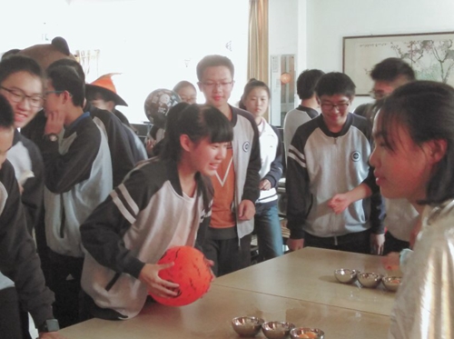本(běn)次活動共有四(sì)項小遊戲,分別為猜(cāi)謎語、白色風暴(bào)、瘋狂投擲及恐怖箱,每個(gè)小項目由至少兩位CI小(xiǎo)組長負責,所有(yǒu)小組長都換上了(le)主題服裝,萬(wàn)聖氛圍愈發濃烈。最受歡迎的(de)項目(mù)是瘋狂投擲,即投杯球,要想將(jiāng)那小小的黃球投入紙(zhǐ)杯中可不容易,同學們踴躍嚐試,激動非常。