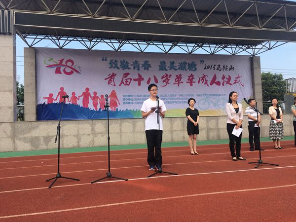 在此正式成人之(zhī)際,我以一個中華人民共和國公民的名義莊嚴宣誓,我立誌成為有理想、有道德(dé)、有文化、守紀律(lǜ)的社會公民……”在鄭重的成人宣誓之後,家長為學生戴上成(chéng)人紀念胸章,宣告著孩子們即將邁入成人的行列(liè),然後我(wǒ)校高二(16)班學生黃誌康作為學生代表發言。930分許,活動正式啟程,大家騎(qí)上單車從八中東校區(qū)出發,經旅遊(yóu)大道一路向東,最(zuì)終(zhōng)於1145分許到達了位於濮塘(táng)的劍湖風景區,越過(guò)終點的成人門,寓意這同學們從此進入人生的另一個階段(duàn)。完成騎行的青年獲得(dé)了主辦方頒發的十八(bā)歲單車成人禮紀念卡,並在簽名牆上留下自己的名字,將十八歲的記憶定格在最美濮塘的青山綠(lǜ)水之間。在騎行的過程中,不少家長也參與其中,為(wéi)孩子們(men)鼓勁加油(yóu)。我校一位同學家長說道:用一個健康的(de)方式來度過(guò)難忘的十八周(zhōu)歲,很(hěn)難得,相信(xìn)對他們(men)來(lái)講,以後(hòu)在人(rén)生的路上會有很(hěn)大(dà)的幫(bāng)助。