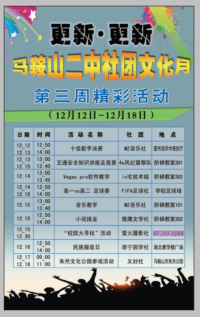 “更新·更新”社團文化月第三周活動(12月12日-18日)