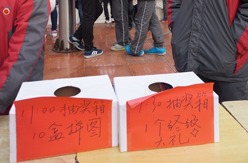 在12月(yuè)1號-29號的社團文化(huà)月活動中,很多同學都收集到了各個社團的徽章印記,在27、28、29號三天,同學們把徽章印(yìn)記兌換成獎券。在嘉年華活動當天,有五個(gè)不同時段不同獎品的抽獎箱,同學們(men)紛紛把獎券投入(rù)不同的抽獎(jiǎng)箱內。學校黨委聶曉霞(xiá)書記(jì)、褚亞飛副(fù)校長和學生會的(de)同學們分別擔(dān)任了前四(sì)個(gè)時(shí)段的抽(chōu)獎嘉賓,而最(zuì)後(hòu)的終極大獎則由郭惠宇校長抽(chōu)出,獎品落(luò)入110班的董婷同學囊(náng)中。