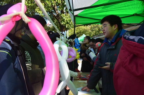 尤(yóu)其是在(zài)第(dì)三輪的活(huó)動中,題目難度直(zhí)線增加。由使用一個氣球編製到(dào)使(shǐ)用兩個(gè)氣球一起編製,同學們大呼好難,工作人員進行細心指導,適當提(tí)點(diǎn),最終有三名同學獲得了獎券,他們喜笑顏(yán)開忙著和(hé)別的同學炫耀自己的英勇戰績。