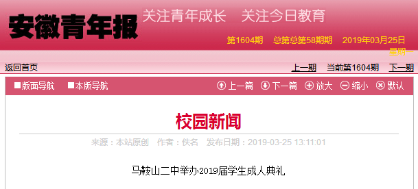 3月25日,《安徽青年報》校園新聞(wén)中報道了我校成人(rén)典禮。