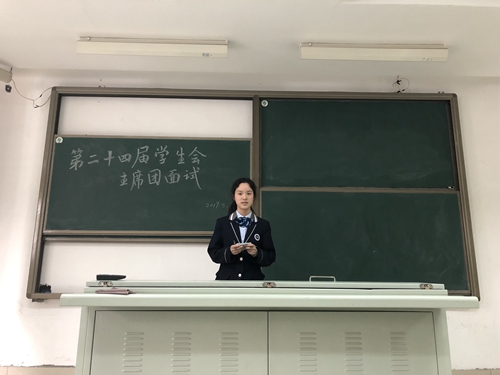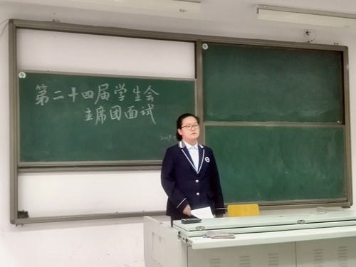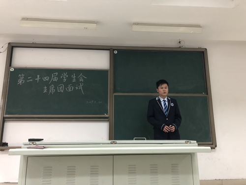 此次(cì)麵試在階梯教室102進行(háng),在筆試中成績排名前6名的同學進入此次麵(miàn)試。在麵試中每位考生要(yào)經過自我介紹、規定問題回答、評(píng)委自由(yóu)提(tí)問三個環節。由團委老師(shī)和(hé)現任學生會幹部、第七屆學生校長助理(lǐ)組成的(de)評委團現場打分(fèn),當場公布分數。第八(bā)屆學生(shēng)校長助理作為觀察員也參加(jiā)了(le)麵試。