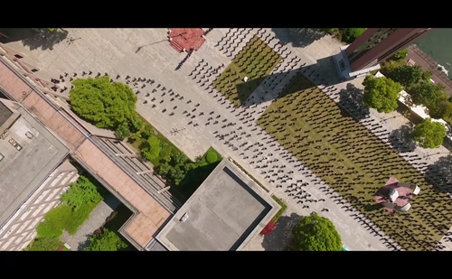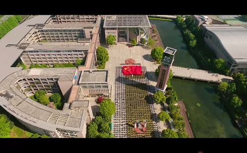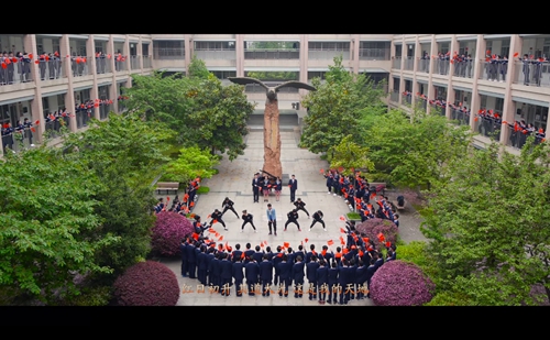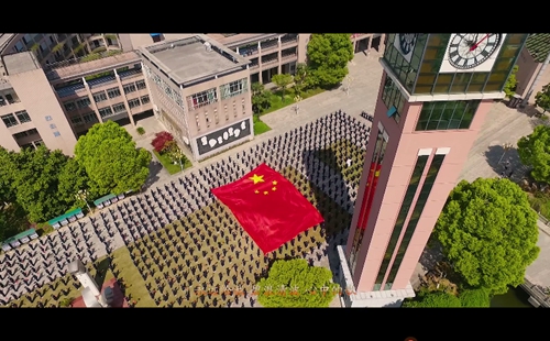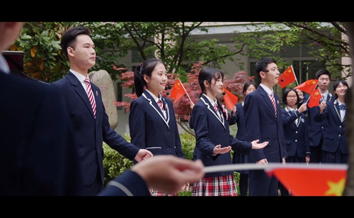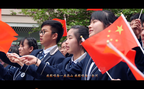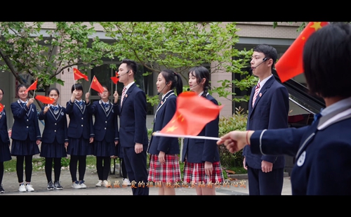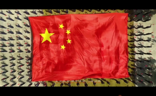 整(zhěng)個MV拍攝活動到了最燃的時刻,要算是一(yī)麵18米乘12米的巨幅國旗從學(xué)生隊伍中拉起並向前傳遞時。