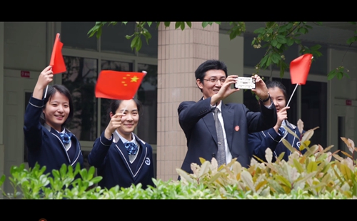 學校老中青教師代表加入了學生的隊伍,歌(gē)唱祖(zǔ)國,讚美祖國。