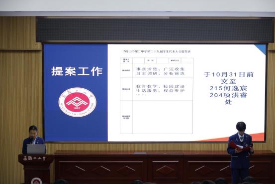 為進一(yī)步(bù)加強學生的民主意識,提升自我管理(lǐ)、自我教(jiāo)育和自我服務的能力,馬鞍(ān)山二中第(dì)二十九屆學生代(dài)表大會於10月15日下午在報(bào)告廳成功舉行(háng)。本次大會由學生會主席團成員胡睿遠同學主持,馬鞍山二中副校長金加林出席會議,第二十九屆學生會幹部、第十(shí)二屆學生校長助理,以及高(gāo)一、高(gāo)二年級的學生代表參會。