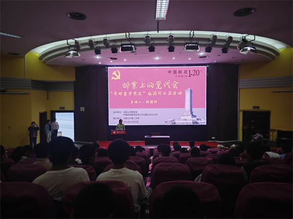 為(wéi)深入推進黨史(shǐ)學(xué)習教育,鑄(zhù)牢中華民族共同體意識(shí),引導我校學生“從小學黨史•永遠跟黨走”,結合安徽省第七屆校園讀書創作活動(dòng)——生肖郵票設計比賽活動要求,我校邀請集郵協會韓朝(cháo)暉老師(shī)於10月13日下(xià)午4時在圖書館一樓報告廳開展了“愛郵票學黨史”講座。