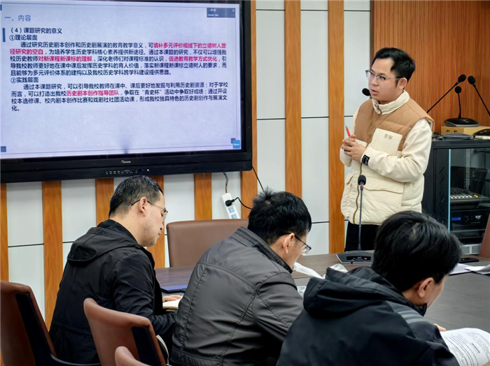 以研促學,教研先行,2024年3月25日下(xià)午(wǔ),我校曆史學科市(shì)級課題《學科育人:多元(yuán)評價視域下曆史劇(jù)本創作展演的實(shí)踐研究》開題論證會(huì)在我校行政樓三(sān)樓會議室舉辦(bàn)。會議由校教科處沈榮主任主持,馬鞍山市教科院(yuàn)規(guī)劃辦(bàn)劉決生主(zhǔ)任、馬鞍山市曆史教研員徐燦華老師、市二中(zhōng)教研組長劉和洪老師擔任評審專家,課(kè)題組全體成員參會。