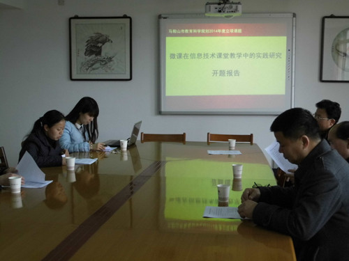 2015年3月20日上午,信息技術市級課(kè)題《微課在信息技術課堂教(jiāo)學中的實踐研究》開題認(rèn)證會在(zài)二中三樓會議室舉行。市信息技(jì)術教研員王大(dà)龍老師、二十二中(zhōng)市學科帶(dài)頭人邱承進老師、我校教科處伍(wǔ)玉魁主任和課題組全體成員參加了會議。課題主持人祖冬華老師(shī)做了開題報告陳述,富(fù)棟老師和陳福寶老師就課題(tí)目前(qián)的實(shí)施情況進(jìn)行了具體介紹。聽取了報告之(zhī)後,伍玉魁主任針(zhēn)對課題內容界定、研究目的和方法等方麵提出了寶貴建議,王大龍老師和邱承進老師也就課題的具體實施進行了全麵而細致(zhì)的指(zhǐ)導。