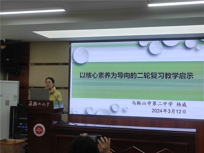 馬(mǎ)鞍山二中教研組長楊(yáng)威老師(shī)介紹了(le)二中生物組的教研情(qíng)況,分享了複習備考方麵的個人經(jīng)驗。她認為(wéi)二輪複(fù)習過程中(zhōng)應該以專題的形式強(qiáng)化主幹,並在常態教學中深析教(jiāo)材(cái),提升能力,注重組織(zhī)和指導學(xué)生在複雜情境中解決問題。